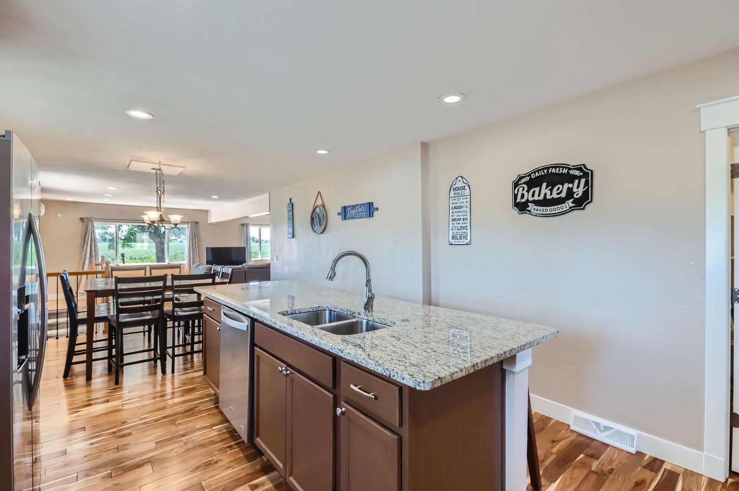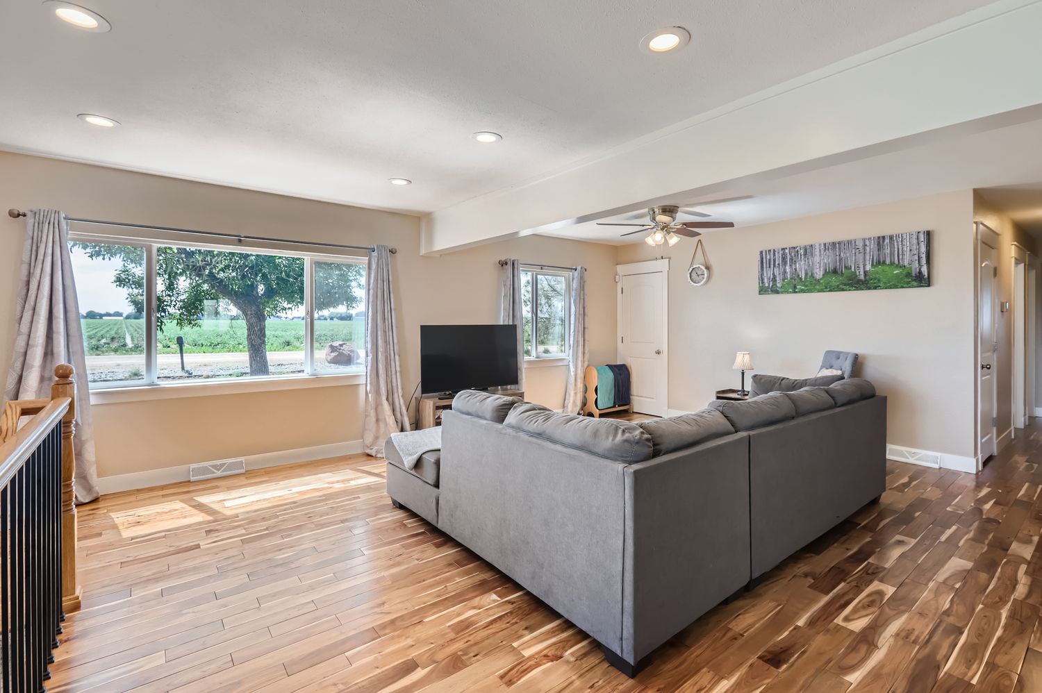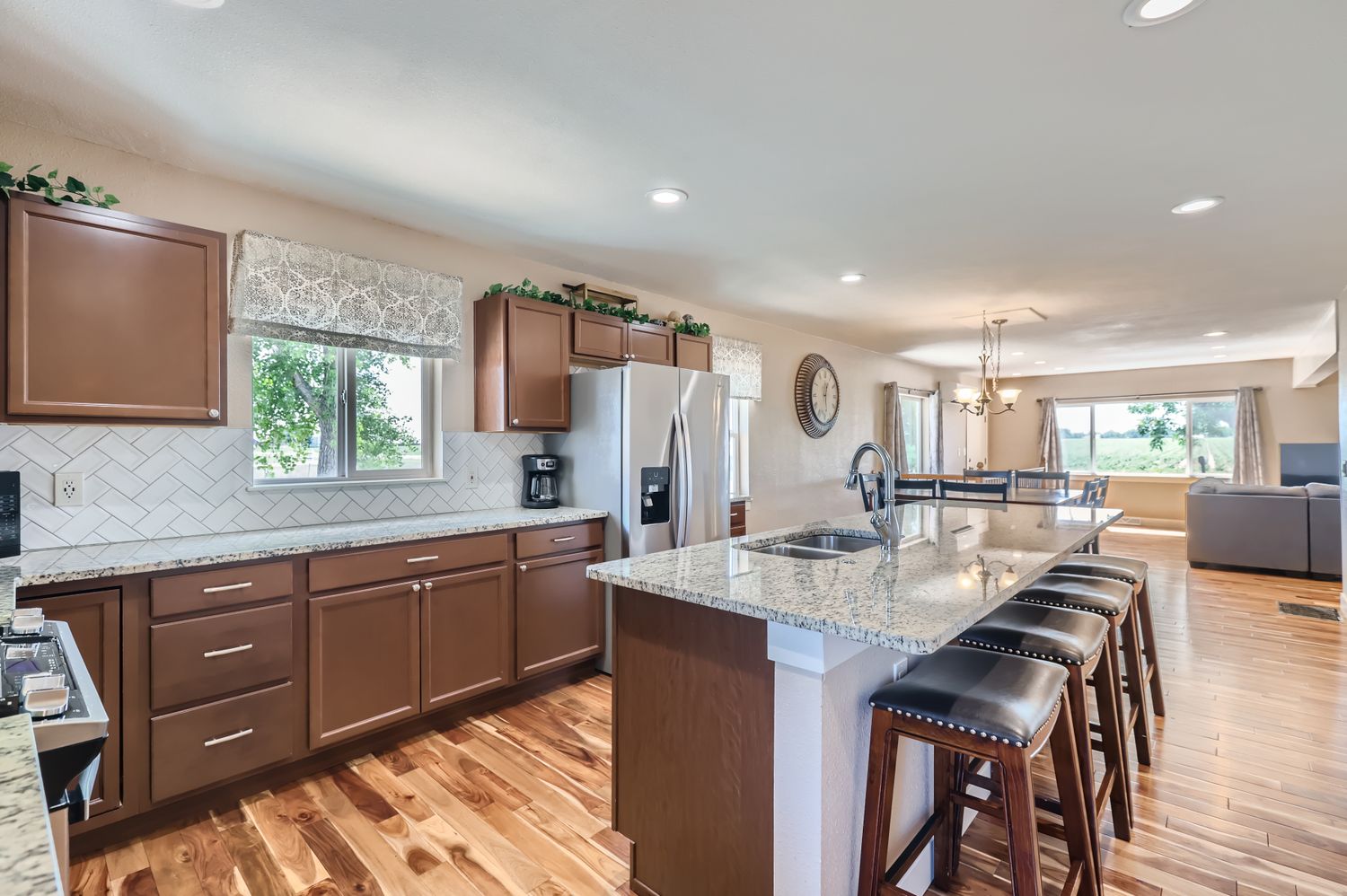 The Country Farmhouse is tucked away on a peaceful country road surrounded by open fields and sweeping Front Range views, this warm and stylish ranch home offers a serene retreat less than an hour from Denver. With open skies for stars gazing and peaceful mornings memories are destined to be made. Whether you are visiting for a family getaway, holiday celebrations, or quiet work-from-home escape, The Country Farmhouse is your place to unwind and reconnect. Open concept living room with plush seating, smart TV, and large windows overlooking the countryside. Fully equipped kitchen with stainless appliances, breakfast bar, and dining for 8. The primary suite with king bed, ensuite bath with walk in shower, second full bathroom with tub/shower, laundry room with full size washer and dryer. The Country Farmhouse offers easy access to all Colorado has to offer, 20-40 minutes to Loveland, Longmont, Boulder, Denver, and Ft Collins, day trip distance to Estes Park and Rocky Mountain National Park and easy highway access to ski getaways and shopping.